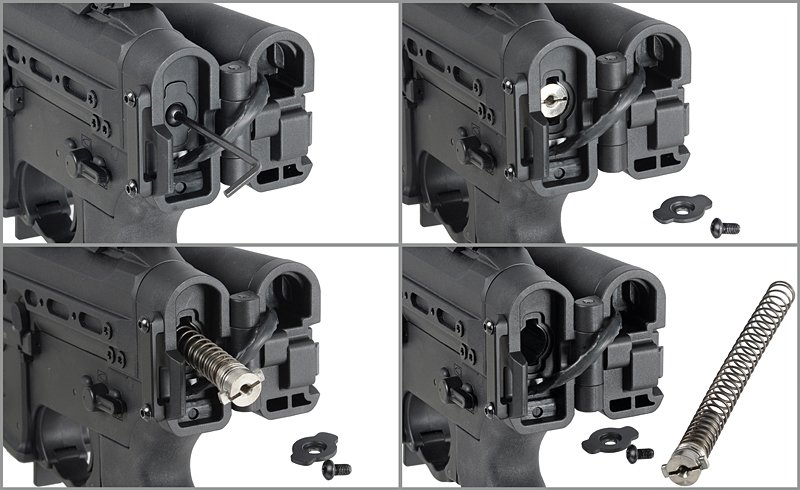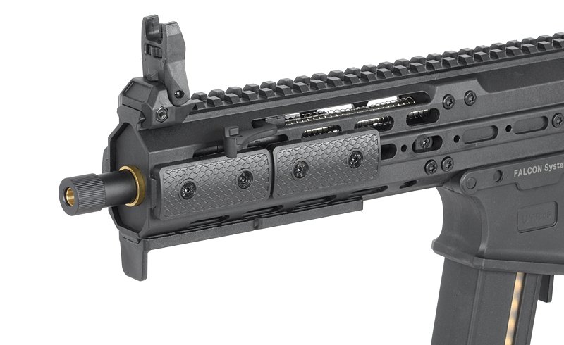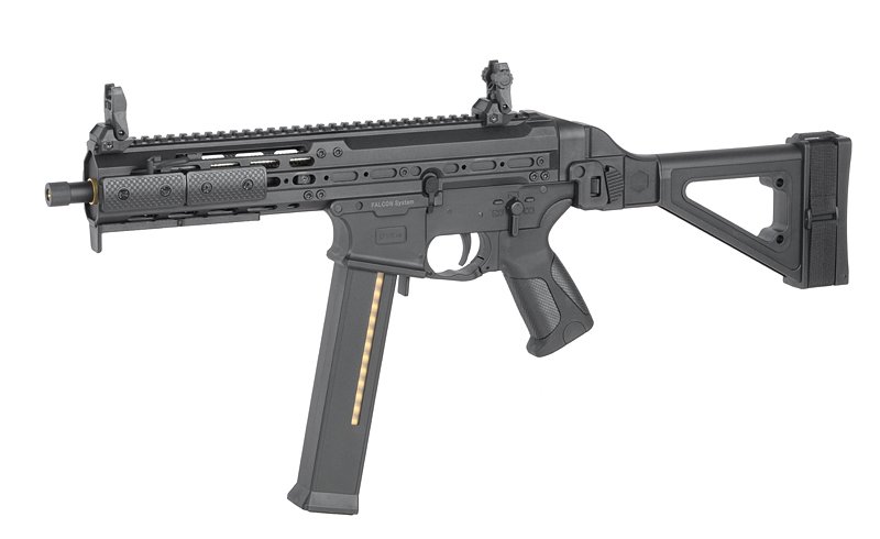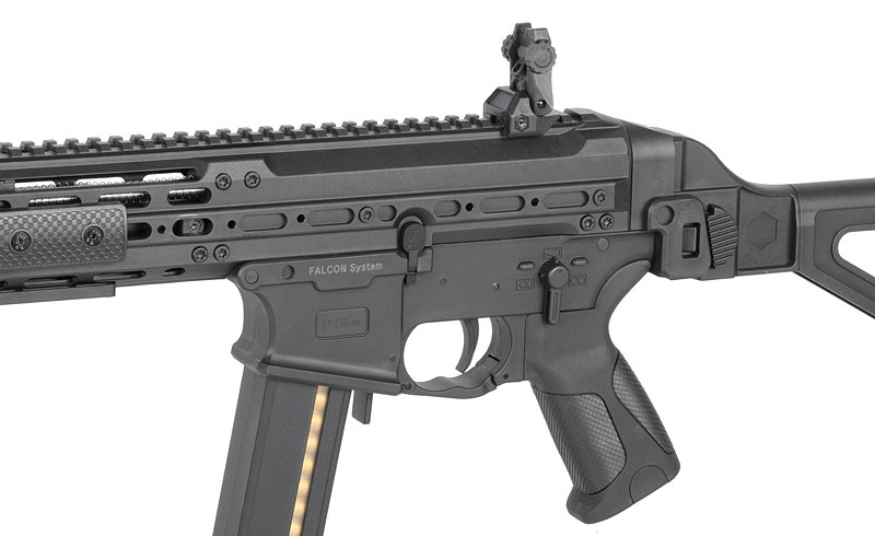 Mechanizmus gearboxu v2 so systémom rýchlej výmeny pružín, namontovaný na 8mm oceľových guľôčkových ložiskách pre vyššiu kadenciu a otočným hopupom. Okrem toho sú tieto repliky štandardne vybavené elektronickým riadiacim systémom Falcon s programovateľným palebným režimom (Double Shot v režime SEMI alebo 1-5 Round Burst v režime AUTO), nastavením citlivosti spúšte (3 režimy) a ochranou motora a batérie.