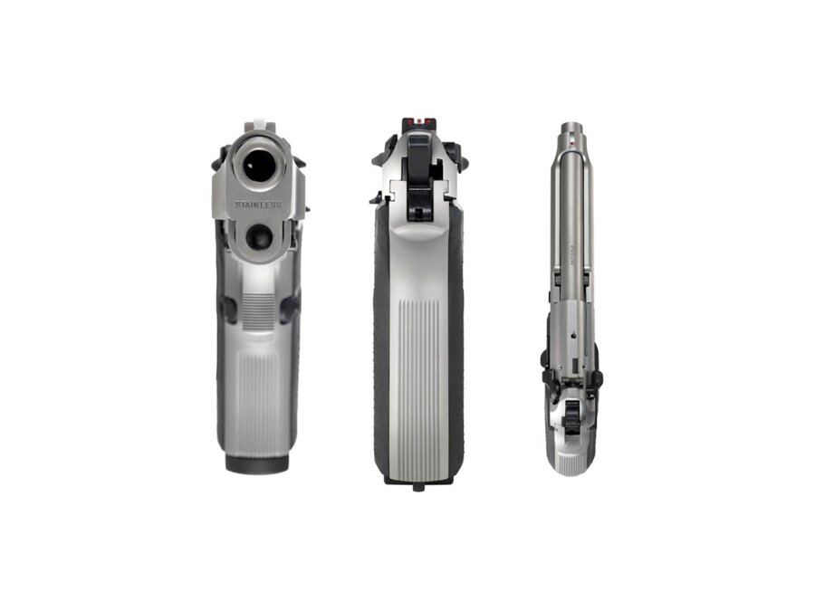 Nerezové prevedenie, kapacita zásobníka 15 nábojov, dĺžka hlavne 125 mm, celková dĺžka 217 mm, celková šírka 38 mm, spúšťový mechanizmus SA/DA. Obojstranný vypúšťač bicieho kohúta kombinovaný s poistkou. Dodáva sa s dvomi rovnakými zásobníkmi. Vyrobené v Beretta USA Corp., Accokeek, Maryland, USA.