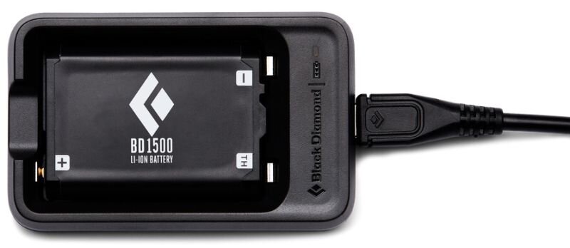 Black Diamond 1500 je nabíjateľná batéria s kapacitou 1500 mAh, ktorá prichádza spolu s USB nabíjačkou. Tento model je kompatibilný so všetkými čelovkami a lampami Black Diamond, ktoré využívajú technológiu Dual Fuel, čo znamená, že môžete používať buď túto nabíjateľnú batériu, alebo klasické alkalické batérie. Vďaka svojej univerzálnosti je ideálnym riešením pre outdoorové aktivity ako beh, turistika či lezenie, kde sa hodí spoľahlivé svetlo na dlhší čas.