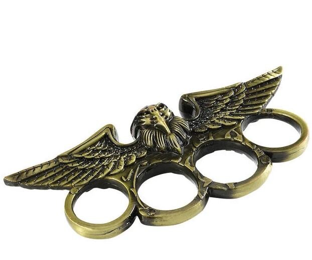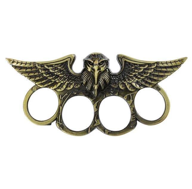 Obranný boxer s ozdobným motívom orla vyrobený z kovových zliatin v mosadznej farbe Výrobok je určený na osobnú ochranu a použiteľný len v medziach nutnej obrany. Hmotnosť je 180 g.