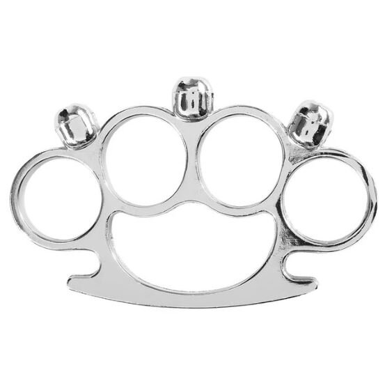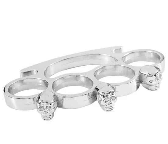 Obranný boxer s ozdobným motívom lebiek v striebornej farbe vyrobený zo zliatiny kovov.Výrobok je určený na osobnú ochranu a použiteľný len v medziach nutnej obrany. Hmotnosť je 120 g.