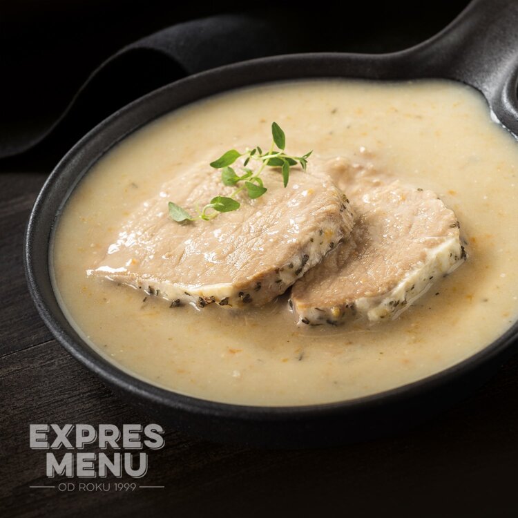 Lahodná smotanová omáčka z koreňovej zeleniny a divokého korenia je rovnocennou variáciou sviečkovej na smotane, avšak s chudým plátkom bravčového stehna.