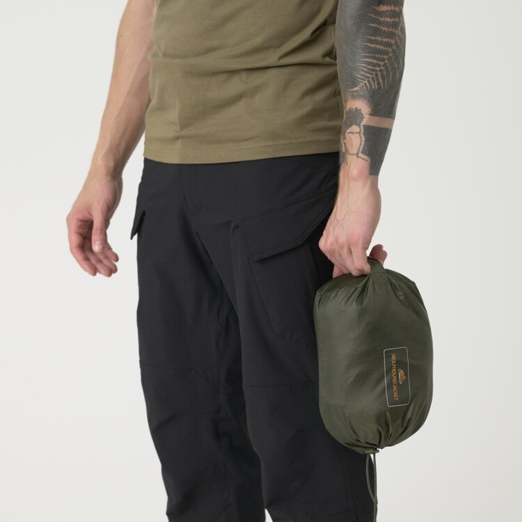 Mäkká fleecová podšívka goliera zvyšuje komfort nosenia a zabraňuje odreninám. Spodné predné vrecká sú podšité fleecom pre teplo. Bunda Wolfhound je ľahko stlačiteľná a dá sa tesne zbaliť bez straty izolačných vlastností. Diskrétny panel so suchým zipsom na ľavom hornom rukáve umožňuje jednoduché prispôsobenie. Vynikajúce hrejivé vlastnosti, vysoká priedušnosť, nízka hmotnosť a vysoká stlačiteľnosť – to všetko spolu robí z Wolfhounda dokonalý celoročný odev pre všetkých outdoorových nadšencov (a ešte viac).