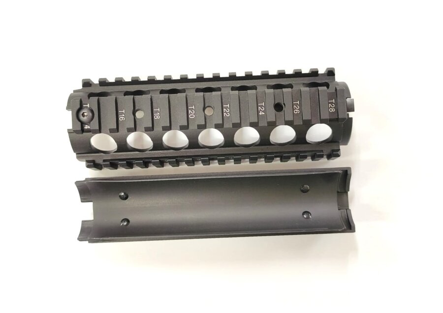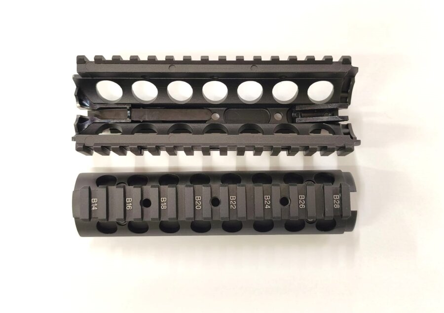 CQB CNC RIS predpažbie + mieridlá pre WE M4 Open Bolt GBBR je kvalitné kovové príslušenstvo určené pre plynové airsoftové repliky M4 od WE.