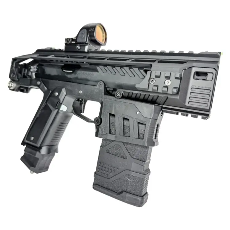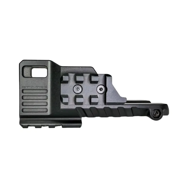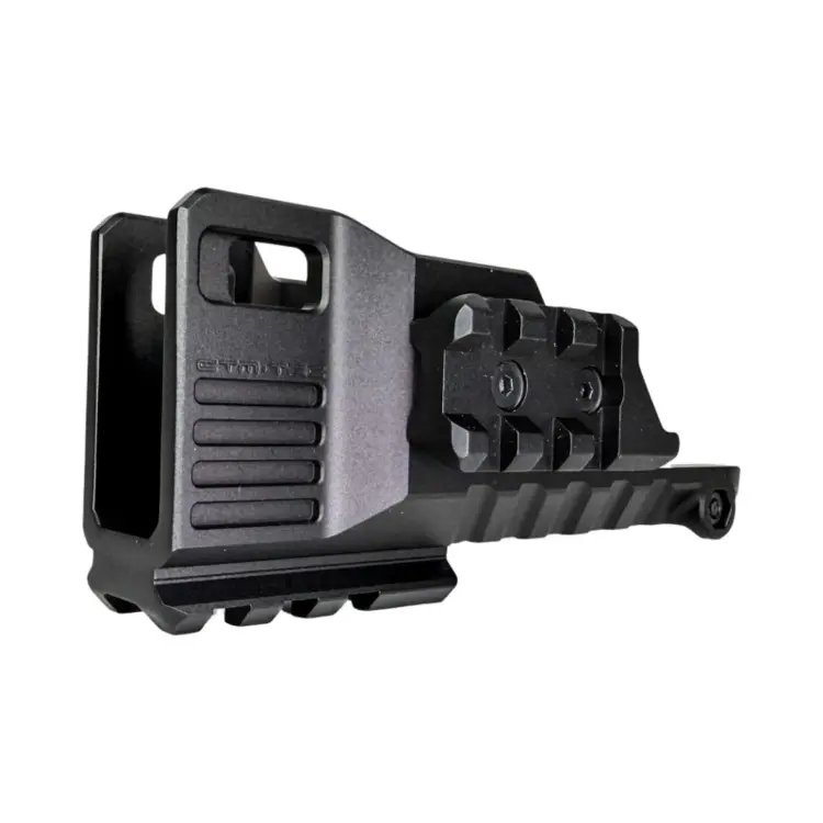 CTM TAC Extended Rail Blast Shield je navrhnutý priamo pre AAP-01 s HPA M4XIMUS kitom a presne naň sedí bez vôle alebo kývania. Konštrukcia z jedného kusu leteckého hliníka 6061 zaručuje vysokú pevnosť. Vďaka integrovaným RIS lištám na bokoch aj spodnej strane získate ďalšie možnosti montáže doplnkov, ako sú taktické svietidlá, PEQ boxy alebo predné rukoväte. Bočné lišty je možné podľa potreby demontovať. V praxi ide o upgrade, ktorý nielen dobre vyzerá, ale hlavne zlepšuje stabilitu a použiteľnosť celej zostavy.