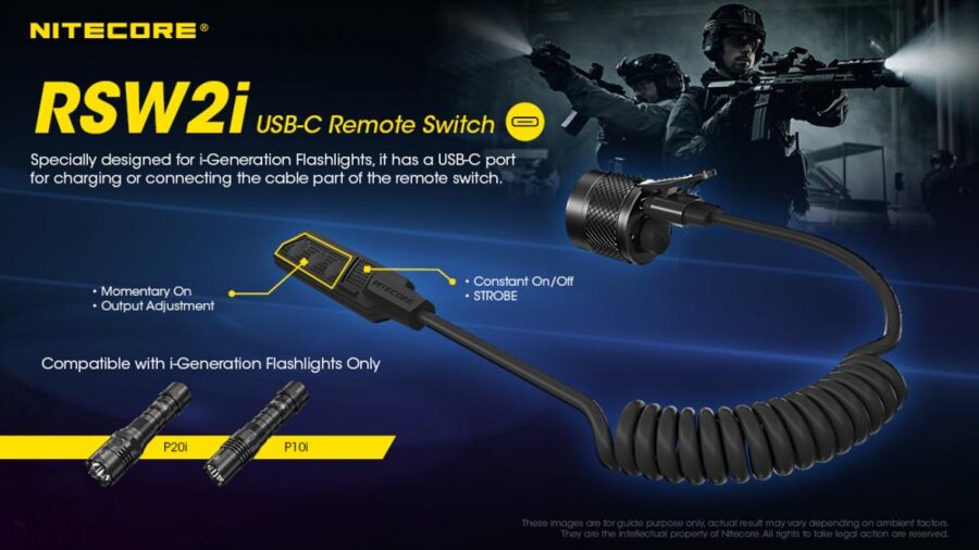 Diaľková spúšť NITECORE je určená pre svietidlá P10i, P10ix, P20ix a P20i.