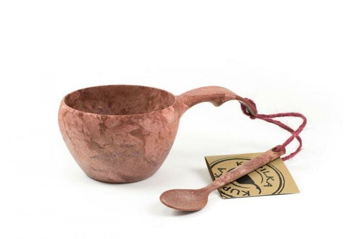 Hrnček v tvare tradičnej kuksy s lyžičkou, vyrobený zo špeciálneho materiálu Kareline®. Materiál je unikátny spojením vlákien z borovicového dreva a termoplastu v pomere 50:50. Spája výhody dreva a plastu. Je nerozbitný, znáša teploty od -30°C až do +110°C, je pevný a ľahký. Takisto neabsorbuje pachy z potravín, jednoducho sa čistí a nie je citlivé voči vlhkosti ako klasický drevený riad.