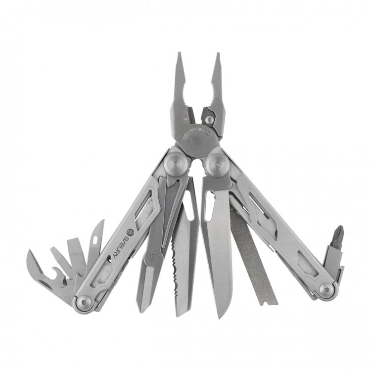 Okrem integrovaných nástrojov sa multifunkčný nástroj dodáva so sadou 3 vymeniteľných bitov upevnených na skladacom tŕni. Vďaka praktickým rozmerom (160 mm v zloženom stave) a nízkej hmotnosti (306 g) môže multifunkčný nástroj Bibury Pro 19 v 1 sprevádzať majiteľa pri každodenných činnostiach.