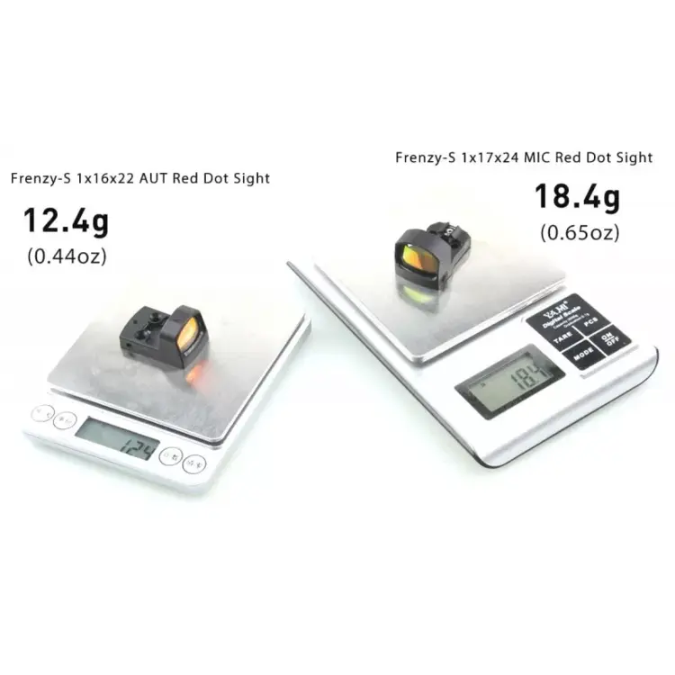 Kompaktný, otvorený kolimátor Vector Optics vhodný pre platformu pištole OR (Optics Ready - MAG-S základňa) pomocou platničky alebo montáž Weaver. Frenzy-S AUT s polymérovým krytom predstavuje najľahší kolimátor na svete s čistou hmotnosťou 12,4g. Nízky a tenký profil s jedinečným dizajnom vybavený sklíčkom s veľkosťou 16x22mm a automatickým svetelným senzorom pre zapnutie a užívanie.