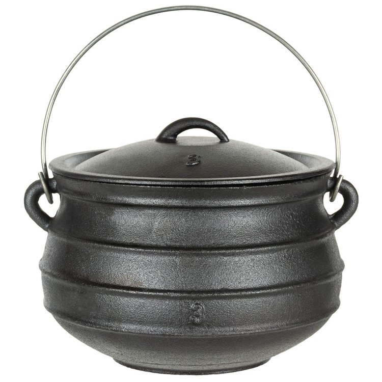| Materiál | hrniec a pokrievka - 100% liatina, rukoväť čeľuste - galvanizované železo |