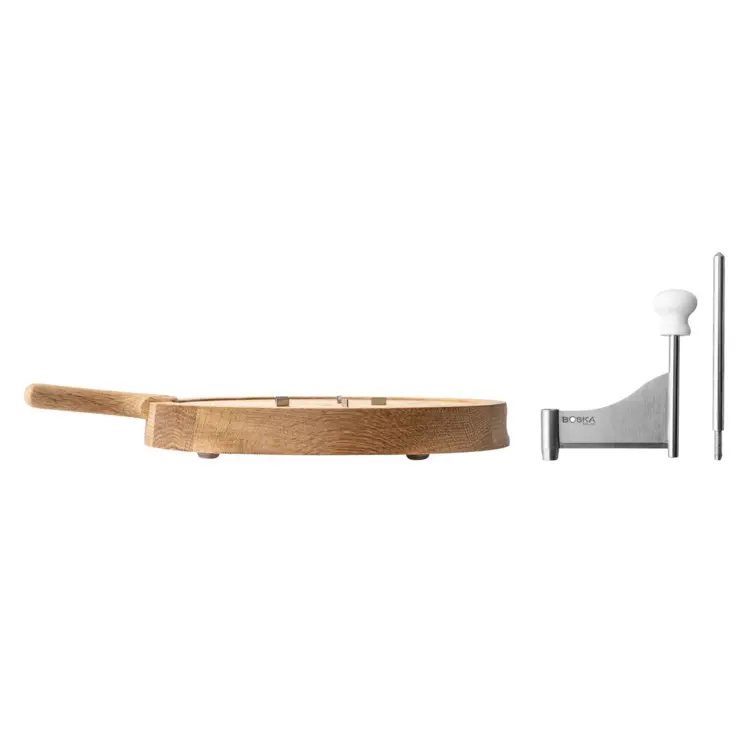 Dodajte svojim oslavám chuť a štýl s krájačom na syr Friends, ktorá je špeciálne navrhnutá na vytváranie krásnych syrových kučier, ako napríklad z Tête de Moine. Rukoväť z dubového dreva zaisťuje pohodlné uchopenie, zatiaľ čo päť kolíkov na základni drží syr pevne na mieste. Pre ešte väčšiu kreativitu môžete kulmu použiť aj s čokoládovými diskami – ideálne na dotvorenie dezertov.
