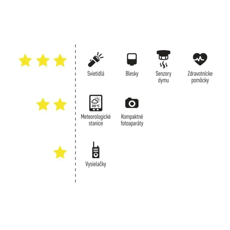 Najlepšia voľba pre profesionálov - nadobudnutie až 800 fotografií. Vhodná pre digitálne fotoaparáty a blesky, elektronické hračky, zdravotnícke pomôcky a prístroje, hobby modely, prehrávače MP3, PDA a príručné GPS.
