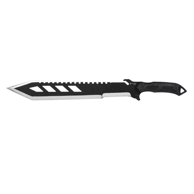 Mačeta EF 712 od nemeckého výrobcu Umarex zvládne aj náročné outdoorové aktivity. Jej prednosti oceníte v divokej prírode aj na záhrade. Monolitická konštrukcia full tang zo vzduchom kalenej ocele 440 s hrúbkou 4,5 mm má spodné hladké a vrchné zúbkovité ostrie. Vďaka perforovanému povrchu dosiahol výrobca zníženie celkovej hmotnosti, zároveň vyšperkoval už aj tak vydarený dizajn. Ergonomicky tvarovaná rukoväť príjemne sedí v dlani.