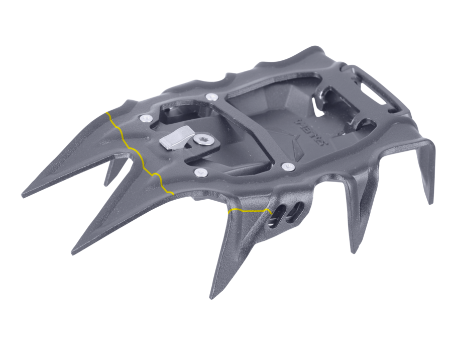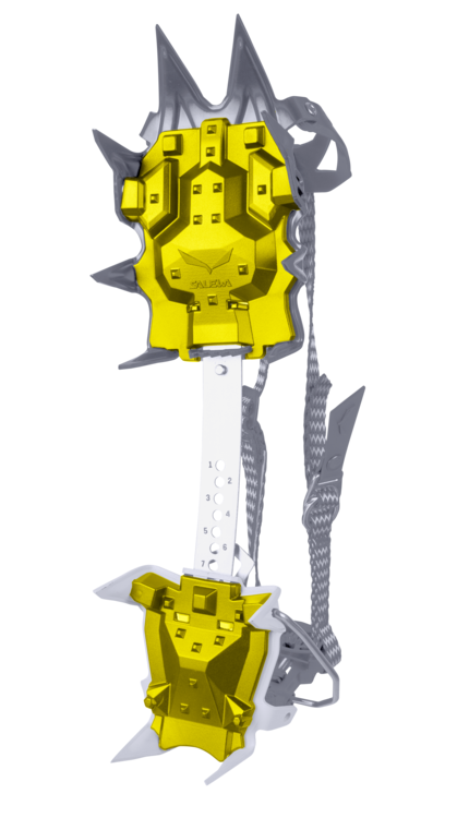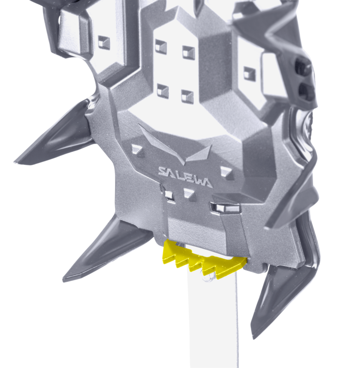 Pre vertikálne ľadové trasy v Pustertal až po vysokohorské alpské lyžovanie v Alpách a všetko medzi tým je mačka Salewa Alpinist Pro všestranná robustná nerezová mačka pre technické lezenie v ľade, zmiešané trasy a všeobecné horolezectvo. Má konštrukciu z profilového rámu z uhlíkovej ocele, 3D v silnom a ľahkom polotuhom dizajne, ktorý pojme topánky s podpätkom a špičkou, vrátane lyžiarskych topánok. Spoľahlivé vodorovné predné body poskytujú solídny prenos zaťaženia na vodopádovom ľade a vodorovných okrajoch skál. Celková geometria a poloagresívne sekundárne body sú navrhnuté tak, aby poskytovali lepšiu priľnavosť na ľade a na snehu, zatiaľ čo extra hroty v strede chodidla ponúkajú ďalšie zabezpečenie na zľadovatených hrebeňoch a verglách. Okrem silného a ľahkého dizajnu to, čo skutočne odlišuje tieto automatické mačaky, sú jeho jedinečné dĺžkovo nastaviteľné remene - už žiadne voľné konce. Výrazne znižujú riziko zakopnutia. Verzia Pro tiež obsahuje systém Salewa Lock System®. Ohybné pláty posiate protiblokovacími doštičkami, ktoré utesňujú celú plochu pod povrchom, minimalizujú nahromadenie snehu. A bez potreby náradia sa táto mačka tiež ľahko nastavuje v teréne.. Nízkoprofilová pätka zaisťuje bezpečné uchytenie, zatiaľ čo koliesko s mikronastavením sa aj v rukaviciach ešte ľahko ovláda.