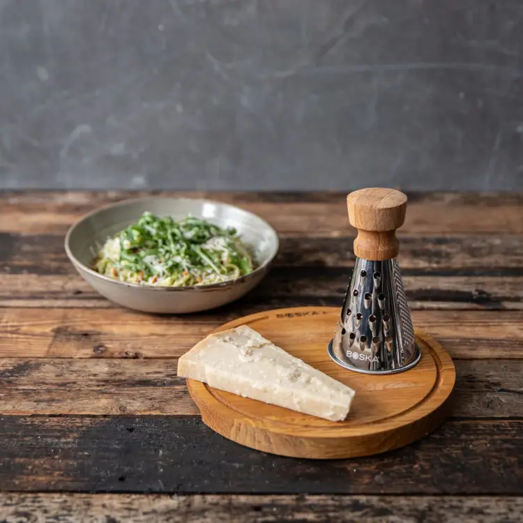 Stolové strúhadlo Mini Oslo+ kombinuje jednoduché používanie so štýlovým vzhľadom. Je ideálne do menších kuchýň alebo keď chcete jednoducho ušetriť miesto. Či už strúhate syr, mrkvu alebo uhorky, toto kompaktné strúhadlo si s tým poradí bez námahy.