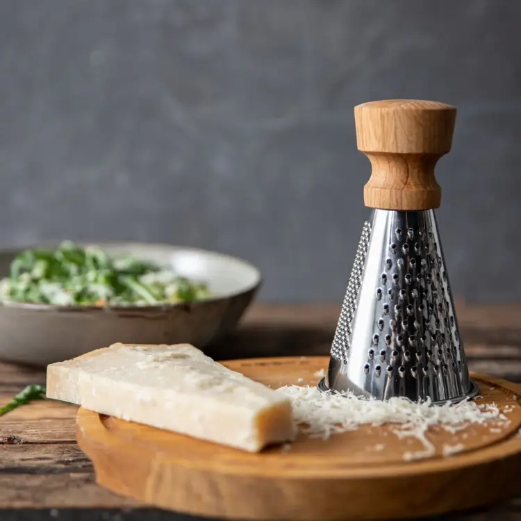 • Odolné a štýlové: Toto trojstranné strúhadlo je vyrobené z pevnej nehrdzavejúcej ocele a európskeho dubového dreva, vďaka čomu je krásnym aj robustným doplnkom vašej kuchyne.
