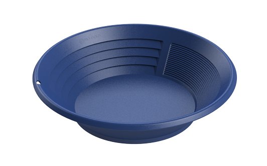 Modrá plastová ryžovacia panvica Mine Lab 15". Panvica vhodná pre každého amatérskeho prospektora a zlatokopa na zlatonosnej rieke, ale i pre profesionálneho hľadača žltého kovu v povodí ďalších zlatonosných riek a potokov.