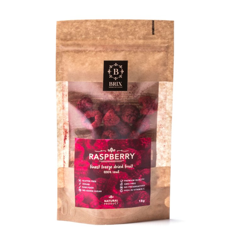 Zloženie 100% maliny dehydrované procesom lyofilizácie (proces sušenia mrazom).