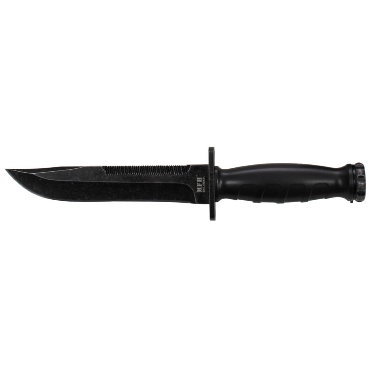 Špičkový bojový nôž Mission od značky MFH. Čepeľ je z časti hladká az časti opatrená pílovým ostrím. Rukoväť je vyrobená z odolného polyméru.