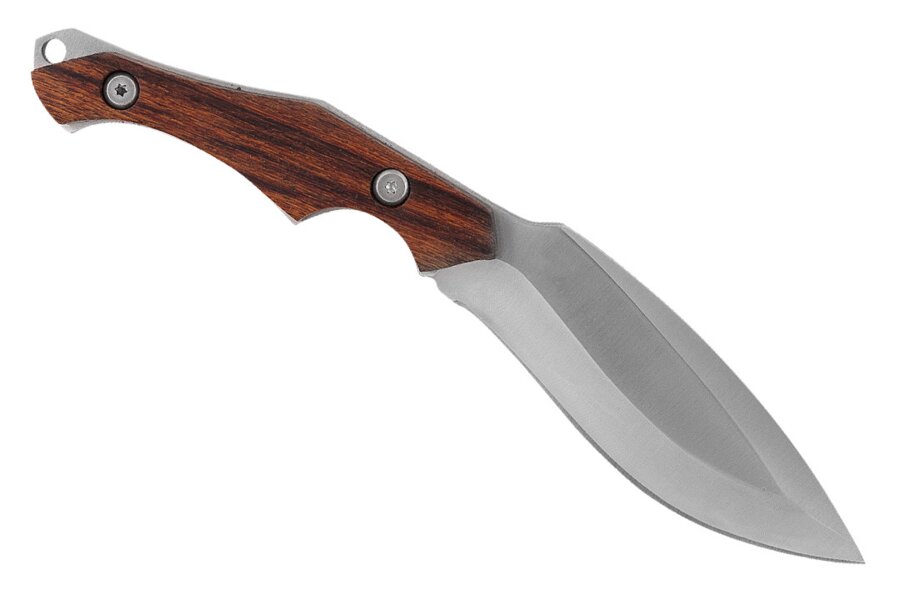 Mierne zakrivenie a čepeľ s upraveným recurve profilom pripomínajú mini kukri mačetu.