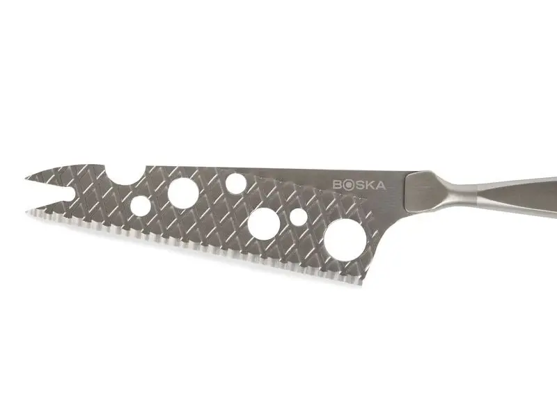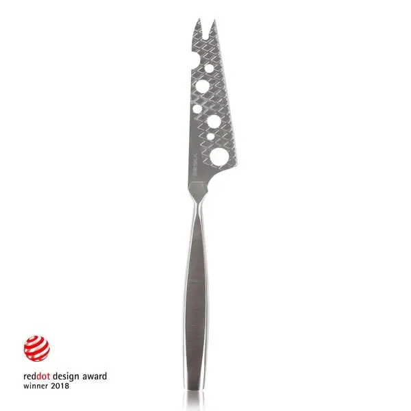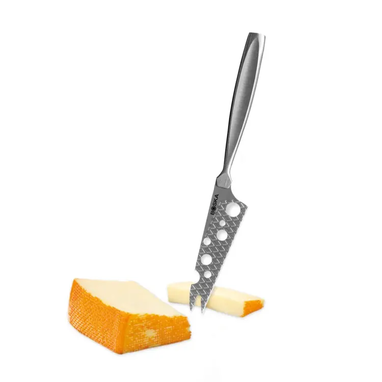 Radi varíte alebo ste blázon do syra? Potom je tento nôž na syr nevyhnutným nástrojom do vašej kuchyne. Poskytuje perfektné riešenie na krájanie mäkkých a polotvrdých syrov. Otvory v čepeli vám umožňujú krájať syr s menším odporom. Okrem toho je vďaka nepriľnavému povlaku a prešívanému vzoru aj menší kontakt so syrom. Obe tieto vlastnosti zabraňujú prilepeniu syra na čepeľ. Nôž je tiež extra ostrý, pretože je nabrúsený z oboch strán, čo umožňuje nožu rezať aj cez tvrdšie kôrky. Vďaka tomu všetkému je servírovanie mäkkých a polotvrdých syrov hračkou.