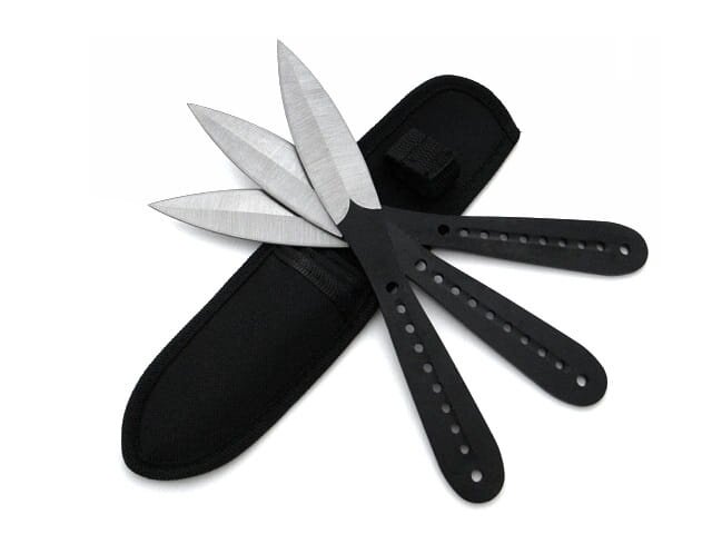 Sada vrhacích nožov sa dodáva s praktickým puzdrom , ktoré sa dá pripevniť na opasok.