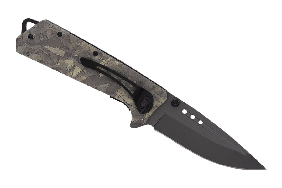 Pružinový nôž perfektne padne do ruky a zaručuje pevný a stabilný úchop .