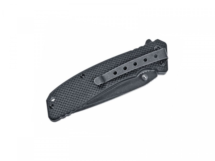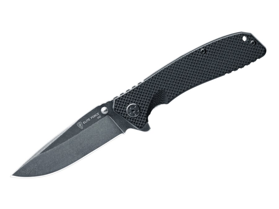 Zatvárací nôž Elite Force EF133 v čiernej farbe. Systém Linerlock udržuje čepeľ zaistenú na svojom mieste.