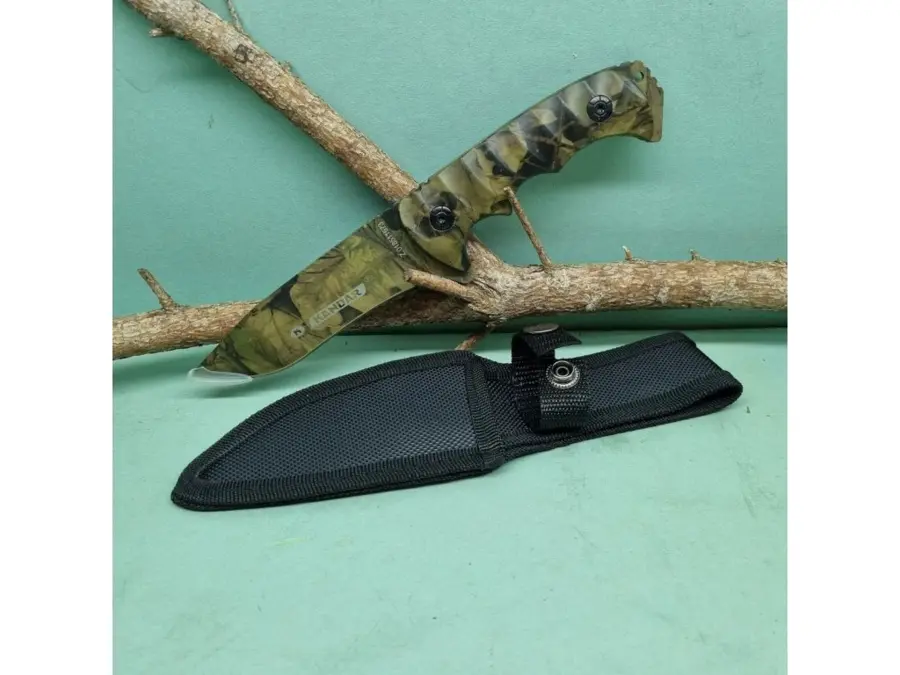 Poľovnícky celokovový nôž s hladkou čepeľou a plastovým puzdrom s motívom lístia. Na spodnej strane rukoväte sa nachádza dierka na prevlečenie šnúrky. Súčasťou je čierne nylonové púzdro s možnosťou pripevnenia na opasok.