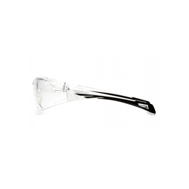 Mäkký, prispôsobivý PVC zorník. Stranice (dvojito vstrekované) s gumovými koncami pre pohodlné, nekĺzavé nosenie. Zorník so zakrivením 10 stupňov poskytuje plnú bočnú ochranu až k straniciam. Polykarbonátový zorník je odolný proti poškriabaniu a chráni pred škodlivým UVA/B/C žiarením. Číry zorník: Na všeobecné použitie vo vnútorných priestoroch, ktoré vyžadujú ochranu proti nárazu.