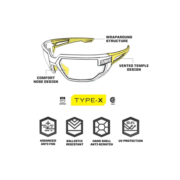 Taktické okuliare Vision Type-X poskytujú kvalitnú ochranu vďaka svojmu nárazuvzdornému polykarbonátovému rámu. Sú zamerané na ochranu zraku členovvšetkých ozbrojených zložiek, alebo športových strelcov, keďže spĺňajú balistickú bezpečnostnú normu MIL-PRF 32432, ako aj nárazovú normu ANSI Z87.1