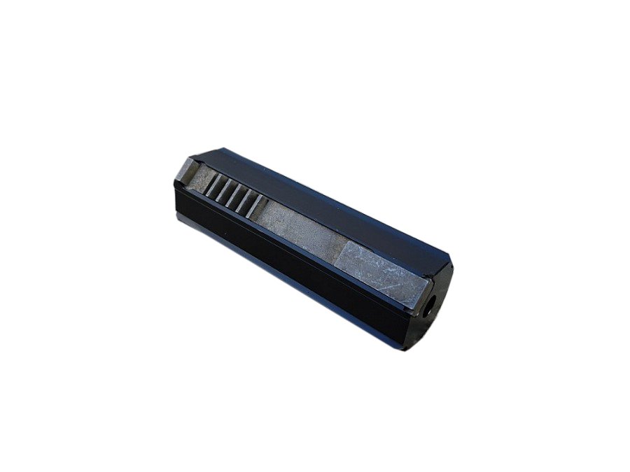 Piest novej generácie s kompletne prepracovaným dizajnom a konštrukciou a novo použitými materiálmi. Korpus piestu je kompletne vyrobený CNC frézovaním z bloku extrémne odolného materiálu POM-C. Tento materiál je veľmi odolný proti mechanickému namáhaniu, oteru, vydrží vysokú záťaž, má veľký teplotný rozsah použitia trvalo od -60 °C do +100 °C, oproti iným plastom má minimálnu nasiakavosť a vydrží aj dlhodobé zaolejovanie. Preto sme ho zvolili pre taký namáhaný diel ako je korpus piestu. Navyše vďaka CNC frézovaniu je korpus veľmi presný a rovný, nemá prepady a tvarové nerovnosti ako poznáme zo vstrekovania plastu do formy. Kôprus piestu je spojený pod prvým naberacím zubom masívnym mostíkom, takže nehrozí riziko prepadnutia hrebeňa pri vysokej záťaži. Hrebeň piestu je usadený v drážkach, teda nie je možné aby sa pri streľbe zdvihol.