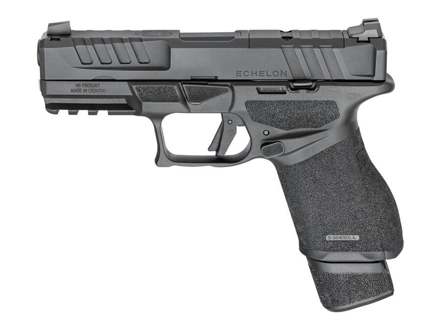 Nový kompaktný Echelon™ 4.0 C si zachováva kľúčové vlastnosti plnohodnotného modelu, no s kratšou 4" hlavňou, menšou rukoväťou a zásobníkmi s nižšou kapacitou 15/18 nábojov, ponúka lepšiu skryteľnosť a pohodlnejšie nosenie. Vysoko prispôsobivá modulárna platforma ponúka vynikajúcu ergonómiu a množstvo patentovaných funkcií. Centrálna prevádzková jednotka COG je úplne nezávislá, čo umožňuje jednoduchú výmenu medzi rôznymi veľkosťami tela zbrane v priebehu niekoľkých sekúnd. Precízne vyrobené šasi z nehrdzavejúcej ocele odolá aj tým najdrsnejším podmienkam a slúži ako robustné puzdro pre tento patentovaný systém. Revolučná montáž optiky so systémom variabilného rozhrania (VIS) umožňuje nainštalovať kolimátory rôznych značiek, bez použitia montážnej platničky. Jednoducho nakonfigurujte samosvorné kolíky do požadovanej polohy a máte k dispozícii montáž s maximálne nízkym osadením pre dokonale presné a intuitívne zacielenie. Echelon™ disponuje kovanou hlavňou i záverom s ochranným povrchom Melonite, poistkou spúšte, poistkou úderníka, indikátorom nabitej komory a obojstranným vypúšťaním zásobníka. (EC9409B-3D)