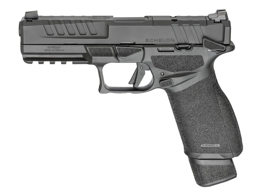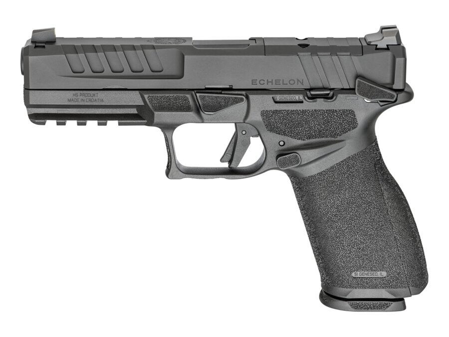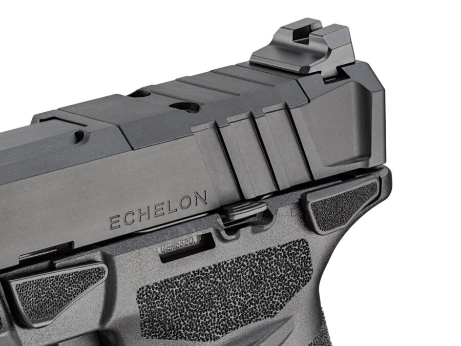 Echelon™ od Springfield Armory nastavuje nový štandard pre moderné pištole. Model s označením Manual Safety je v prevedení s obojstrannou nízkoprofilovou manuálnou poistkou na palec. Zatiaľ čo početné pasívne bezpečnostné mechanizmy Echelon™ zaisťujú bezpečné prenášanie a ovládanie pištole, táto možnosť je ideálna pre tých, ktorí uprednostňujú pridanie manuálnej poistky. Vysoko prispôsobivá modulárna platforma ponúka vynikajúcu ergonómiu a množstvo patentovaných funkcií. Centrálna prevádzková jednotka COG je úplne nezávislá, čo umožňuje jednoduchú výmenu medzi rôznymi veľkosťami tela zbrane v priebehu niekoľkých sekúnd. Precízne vyrobené šasi z nehrdzavejúcej ocele odolá aj tým najdrsnejším podmienkam a slúži ako robustné puzdro pre tento patentovaný systém. Revolučná montáž optiky so systémom variabilného rozhrania (VIS) umožňuje nainštalovať kolimátory rôznych značiek, bez použitia montážnej platničky. Jednoducho nakonfigurujte samosvorné kolíky do požadovanej polohy a máte k dispozícii montáž s maximálne nízkym osadením pre dokonale presné a intuitívne zacielenie. Echelon™ disponuje kovanou hlavňou i záverom s ochranným povrchom Melonite, poistkou spúšte, poistkou úderníka, indikátorom nabitej komory a obojstranným vypúšťaním zásobníka. Dodáva sa s dvomi zásobníkmi z nehrdzavejúcej ocele s kapacitou 17 a 20 nábojov. (EC9459BMS-U)