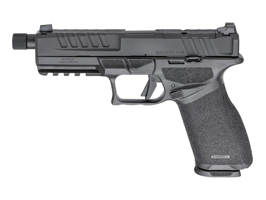 Echelon™ od Springfield Armory nastavuje nový štandard pre moderné pištole. Vysoko prispôsobivá modulárna platforma ponúka vynikajúcu ergonómiu a množstvo patentovaných funkcií. Centrálna prevádzková jednotka COG je úplne nezávislá, čo umožňuje jednoduchú výmenu medzi rôznymi veľkosťami tela zbrane v priebehu niekoľkých sekúnd. Precízne vyrobené šasi z nehrdzavejúcej ocele odolá aj tým najdrsnejším podmienkam a slúži ako robustné puzdro pre tento patentovaný systém. Revolučná montáž optiky so systémom variabilného rozhrania (VIS) umožňuje nainštalovať kolimátory rôznych značiek, bez použitia montážnej platničky. Jednoducho nakonfigurujte samosvorné kolíky do požadovanej polohy a máte k dispozícii montáž s maximálne nízkym osadením pre dokonale presné a intuitívne zacielenie. Echelon™ disponuje kovanou hlavňou i záverom s ochranným povrchom Melonite, poistkou spúšte, poistkou úderníka, indikátorom nabitej komory a obojstranným vypúšťaním zásobníka. Dodáva sa s dvomi zásobníkmi z nehrdzavejúcej ocele s kapacitou 17 a 20 nábojov. (ECHELON Threaded, 3-Dot Tritium, 9x19, ECT9459B-3D)