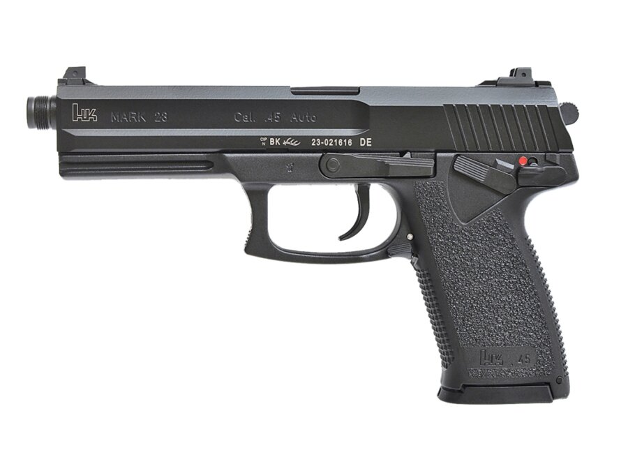 MARK 23 – samonabíjacia pištoľ kal. .45ACP, čierna, kapacita zásobníka 12 nábojov, SA/DA (single action/double action), mieridlá s bielymi bodmi (1+2 body), celková dĺžka 245 mm, šírka 40 mm, výška 150 mm, dĺžka hlavne 149 mm, dĺžka zámernej 197 mm, hmotnosť so zásobníkom (bez nábojov) 1100 g, odpor spúšte 20 N (SA)/ 50 N (DA).