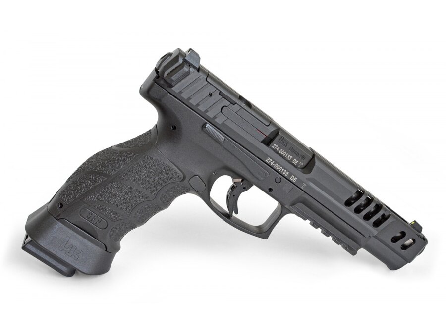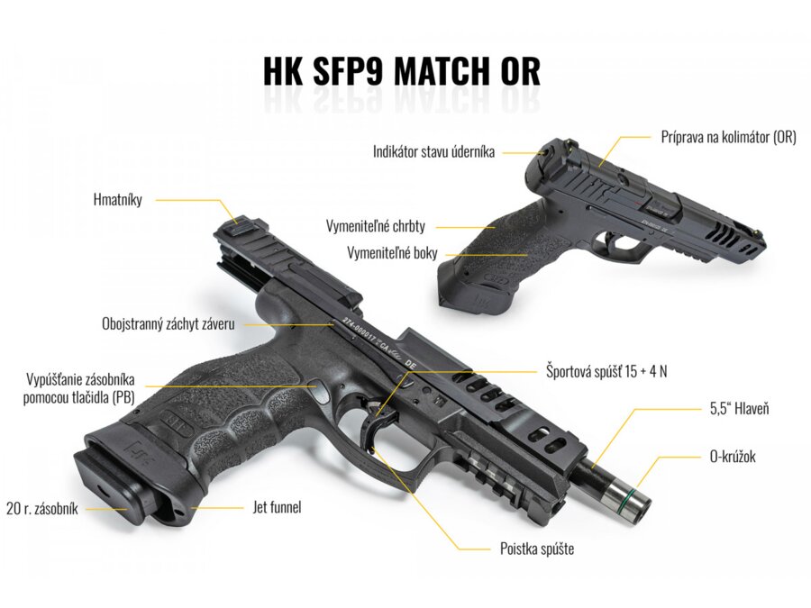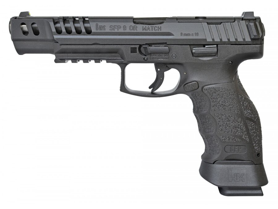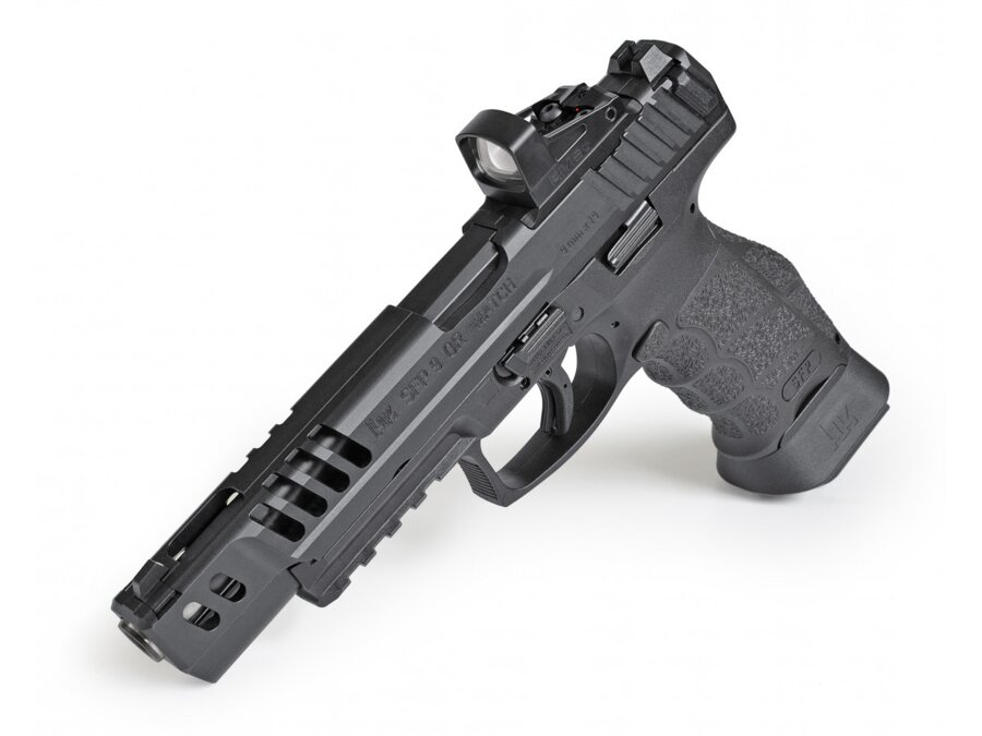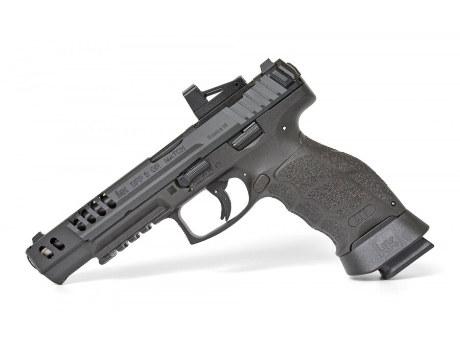 HK SFP9 MATCH - nová vlajková loď pre ambicióznych športových strelcov. Ideálne vyváženie, nová športová spúšť s odporom iba 15N + 4N a presná 5,5 palcová hlaveň zabezpečujú vysokú presnosť či už pri statickej alebo dynamickej streľbe. Rozšírená zásobníková šachta pre rýchlejšie prebite.