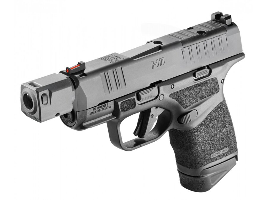 HS H11 TB RDR CC - obľúbený model je teraz ponúkaný aj v konfigurácii "Rapid Defense Package". Ta prináša 3.8" hlaveň so závitom na ústí a kompenzátor s patentovaným samouzamykacím dizajnom. Ostatné parametre ostávajú rovnaké ako u H11/HELLCAT®. Kovaná hlaveň i záver s ochranným povrchom Melonite®. Prepracovaná spúšť Gen 2. Tríciová muška s luminiscenčným krúžkom a cieľnik s bielym zvýraznením v tvare polkruhu (obe sú stranovo nastaviteľné, vyrobené z ocele). Adaptívny povrch rukoväte poskytuje výnimočnú kontrolu pri rýchlej streľbe. H11 TB RDR CC je vybavený poistkou spúšte, poistkou úderníka a indikátorom nabitej komory. Vypúšťač zásobníka sa dá otočiť na pravú stranu pre potreby ľavákov. Malé rozmery, veľká kapacita, nízka hmotnosť a vysoká spoľahlivosť robia z HS H11 TB RDR CC dokonalú zbraň na skryté nosenie.