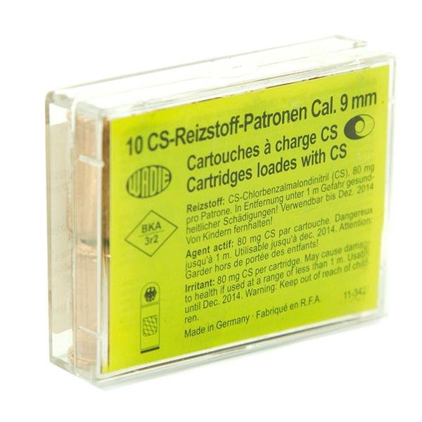 Revolverový obranný slzotvorný náboj nemeckej značky Wadie pre plynové (expanzné) zbrane kal. 9 mm R s koncentráciou 80 mg účinnej látky CS. Balenie obsahuje 10 ks. Dosah účinnej látky po výstrele je max. 3 až 5 metrov.