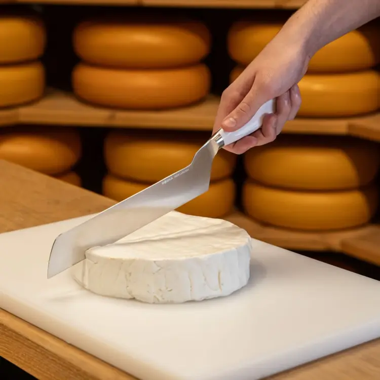 Pracujte rýchlo a zručne s minimálnou námahou a stratou pri rezaní. Tento nôž je ideálny na profesionálne použitie v syrárskom sektore aj v domácnosti. Čepeľ je vyrobená z vysoko kvalitnej, koróziivzdornej nemeckej ocele, vďaka čomu je mimoriadne jednoduché krájať atraktívne kúsky všetkých vašich polotvrdých syrov.