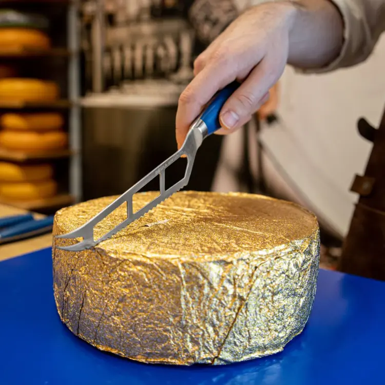 Tento univerzálny nôž je ideálny na profesionálne použitie v syrárskom a potravinárskom sektore, ako aj v domácnosti. Čepeľ (140 mm dlhá rezná hrana) je vyrobená z vysokokvalitnej nemeckej ocele odolnej voči korózii a umožňuje vám bez námahy krájať atraktívne kúsky všetkých mäkkých a polotvrdých syrov, ako sú Roquefort a raclette.
