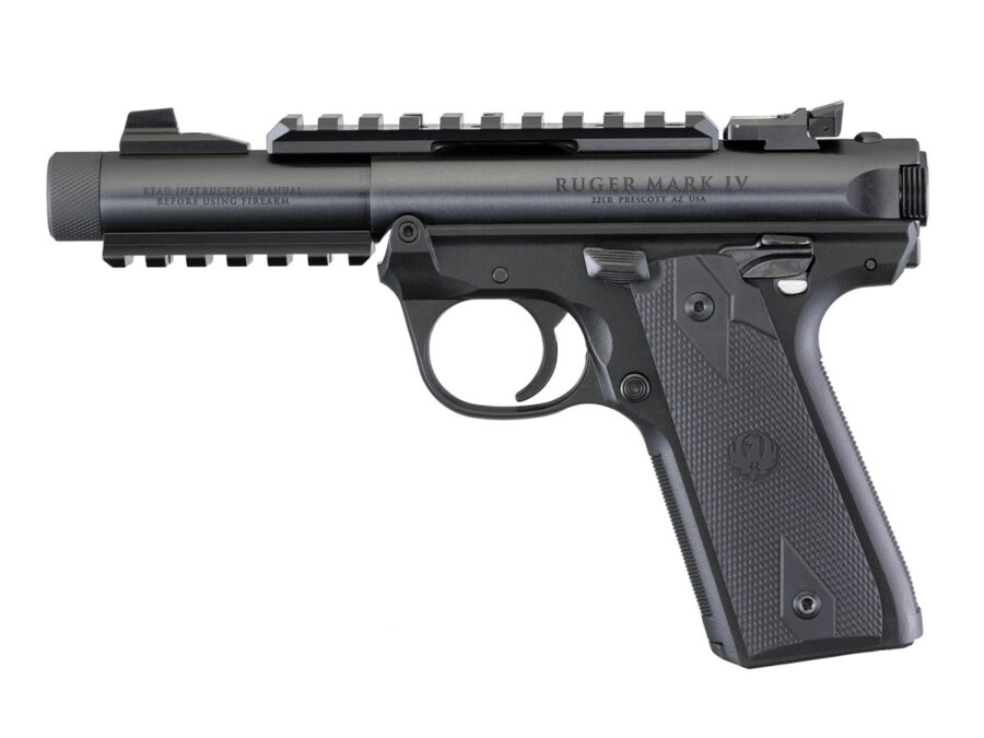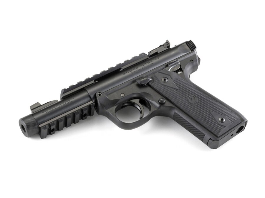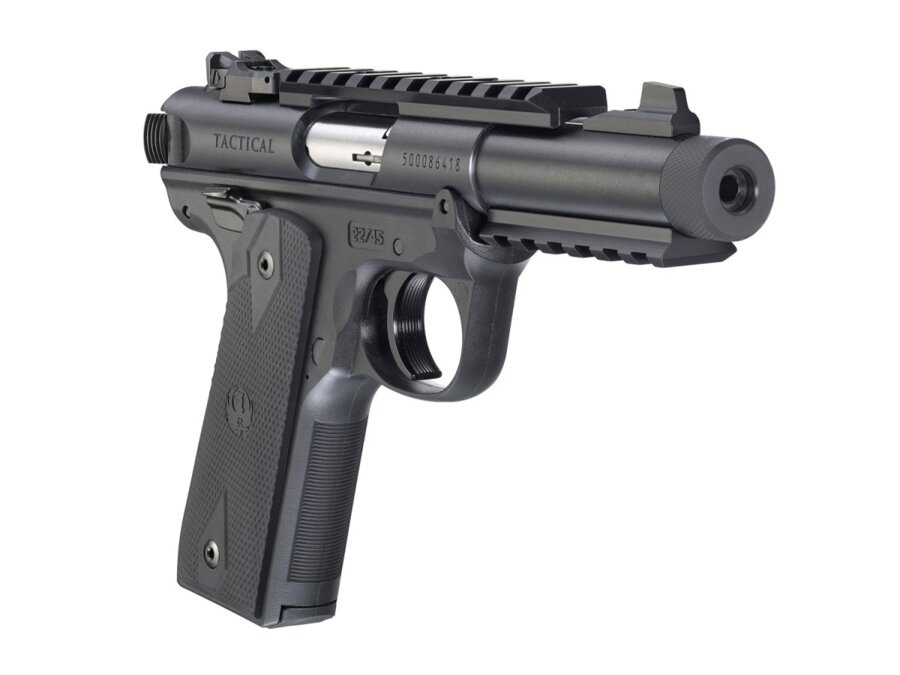 Pištoľ Ruger Mark IV 22/45 Tactical 40149 v čiernom prevedení s 4.4“ dlhou za studena kovanou hlavňou pre výnimočnú presnosť a dlhú životnosť. Pohodlný precízne tvarovaný polymérový rám a rukoväť v štýle 1911 pre skvelý vzhľad a pohodlný a pevný úchop. Stranovo i výškovo nastaviteľný cieľnik. Manuálna poistka prestaviteľná na obe strany.