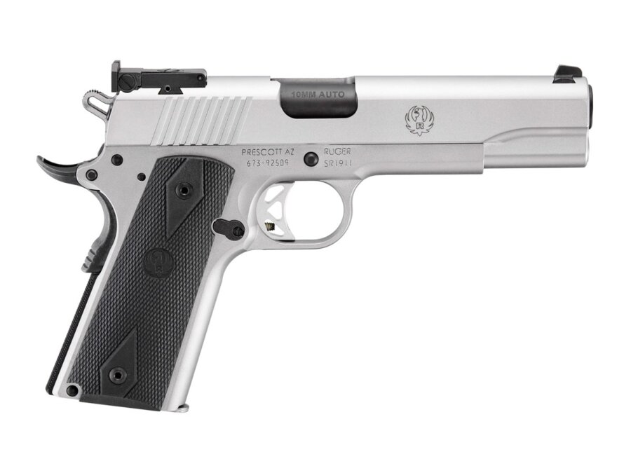Ruger SR1911 Target 6739 je poloautomatická pištoľ kalibru 10mm Auto v štýle 1911, známa svojou presnosťou a spoľahlivosťou. Má precízne spracovanie, hlaveň z nerezovej ocele a ľahkú hliníkovú konštrukciu tradičného dizajnu s povrchovou úpravou v matnom nereze s vymeniteľnými úchopovými panelmi z čiernej gumy a vrúbkovaním na chrbte. Skeletonizovaná hliníková spúšť poskytuje veľmi ostrý, ľahký stisk s rýchlym resetom. Ruger SR1911 Full-Size 6739 disponuje manuálnou poistkou, úchopovou poistkou, indikátorom nabitej komory, skeletizovaným kladivom s titánový úderníkom a nastaviteľným cieľnikom. V balení 2 ks zásobníkov z nerezovej ocele.