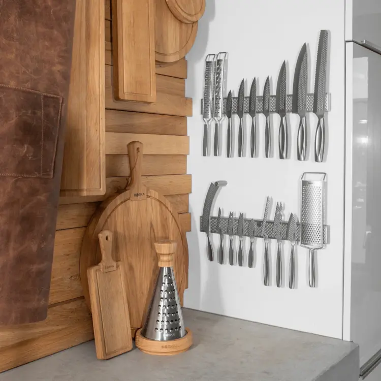 • Štýlový a praktický: Magnet na nože umožňuje bezpečné skladovanie, udržiava nože dlhšie ostré a dodáva vašej kuchyni organizovaný a sofistikovaný vzhľad.