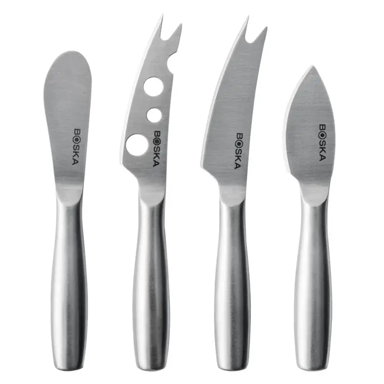 • Všestranné použitie: Súčasťou balenia sú štyri malé nože na syr, každý určený pre špecifické druhy syrov – od mäkkého Brie po tvrdý parmezán, a dokonca sa nátierky robia ako maslo.