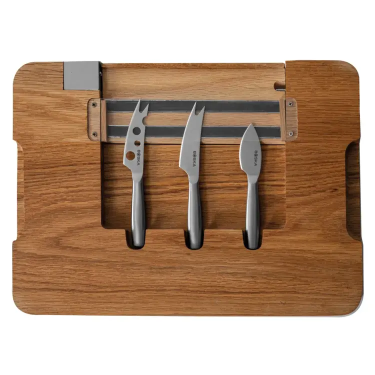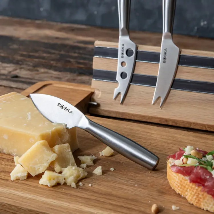 Inteligentný dizajn dosky robí servírovanie nielen jednoduchým, ale aj štýlovým. Vďaka ľahkým nožom a materiálu vhodnému do umývačky riadu si vychutnáte maximálne jednoduché používanie. BOSKA vám ponúka odolné a vysoko kvalitné kuchynské pomôcky s doživotnou zárukou, aby ste si svoju sadu na párty syry mohli užívať po celý život.