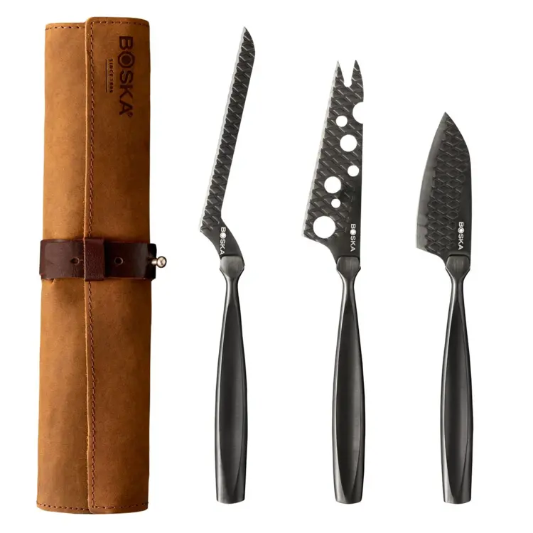 Sada nožov na syr Monaco+ Dark od spoločnosti BOSKA nielenže ponúka perfektné nástroje na krájanie syra, ale aj výrazný kúsok do vašej kuchyne alebo na stôl.