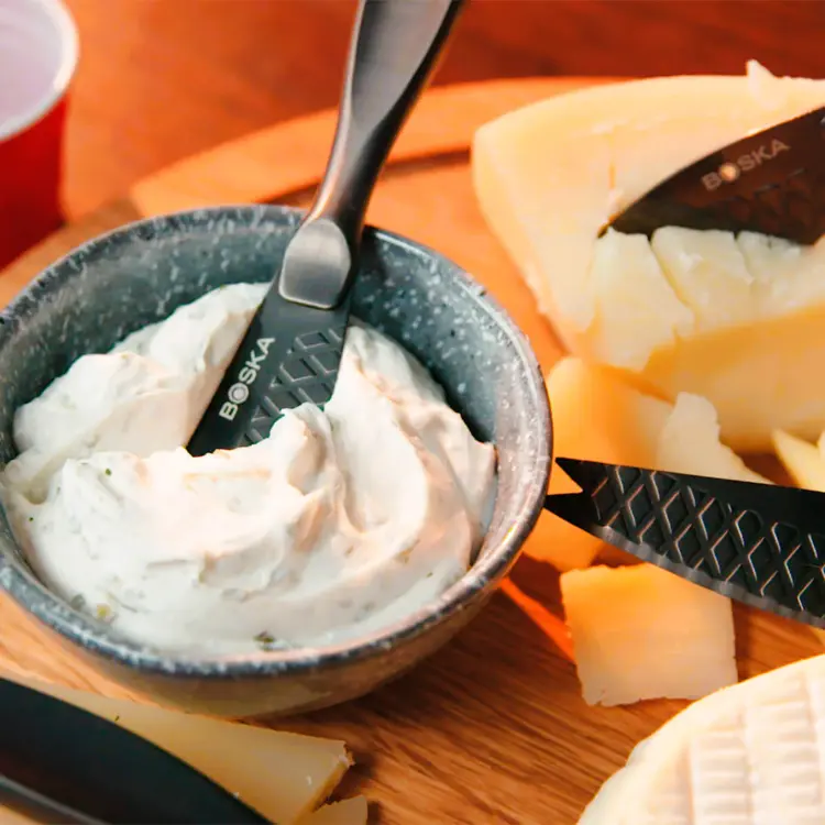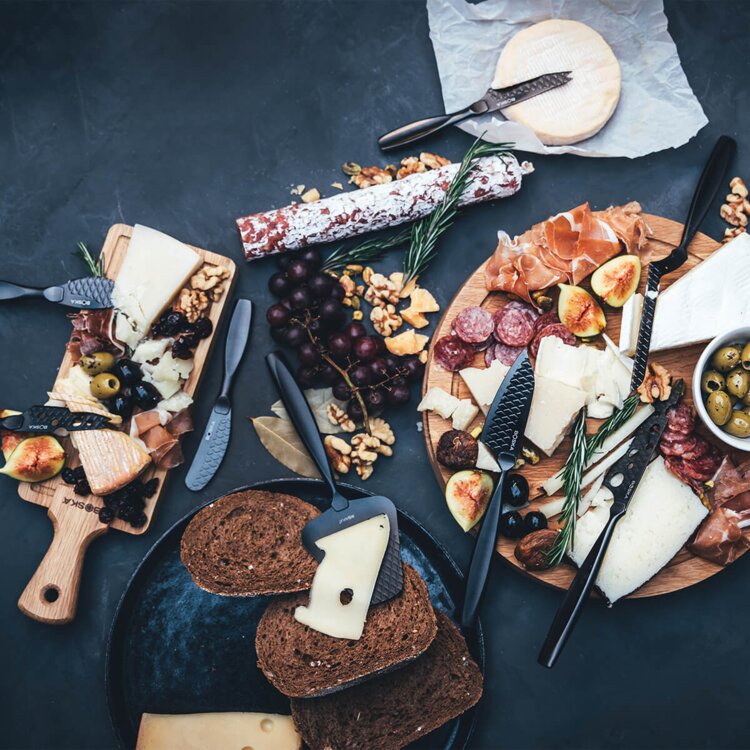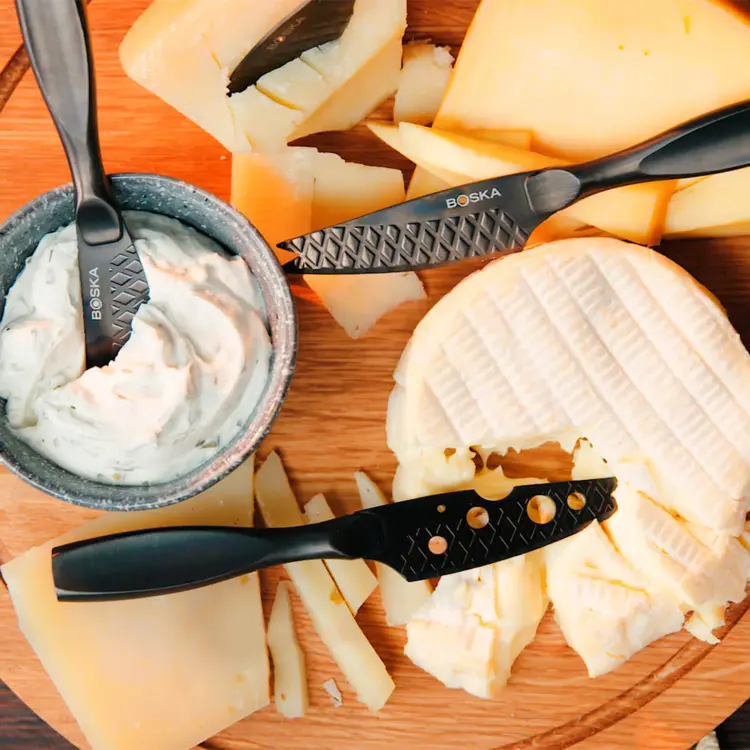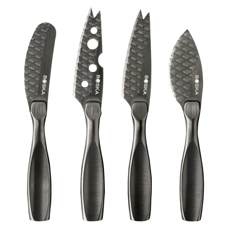 Sada nožov na syr Monaco+ Small Dark je skutočným pútačom pozornosti na vašej syrovej doske. Táto kompletná sada štyroch malých nožov je určená pre všetky druhy syrov. Vďaka nepriľnavému povrchu, vaflovému vzoru a ergonomickému dizajnu budete krájať hladko.