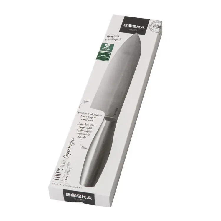 Minimalistická podrážka umožňuje plné využitie dĺžky čepele, čím sa zabezpečí, že každý rez bude vyzerať presne. Či už ste amatérsky kuchár alebo kulinársky profesionál, tento nôž pozdvihne váš kuchynský zážitok. Vďaka doživotnej záruke je šéfkuchársky nôž Copenhagen inteligentnou investíciou, ktorá opakovane dokazuje svoju hodnotu.