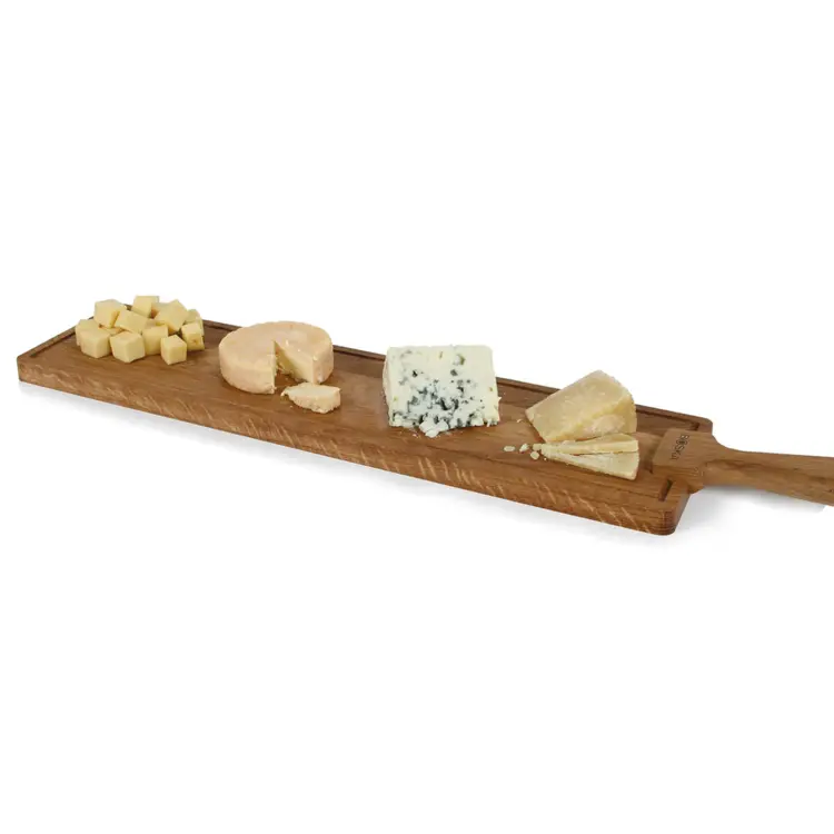 Servírovací podnos Friends XL je dokonalým stredobodom vašich stretnutí. S pôsobivou dĺžkou 100 cm premení tento podnos každý stôl na slávnostnú prezentáciu. Je vyrobený z robustného európskeho dubového dreva, vyžaruje kvalitu a autentickosť, zatiaľ čo kožená šnúrka ponúka štýlový spôsob, ako ho zavesiť ako dekoratívny prvok. Tento podnos nie je len praktický, ale dodá vašim podujatiam skutočný „wow“ faktor.